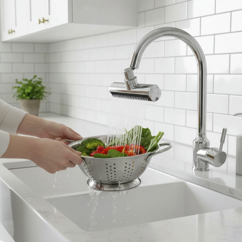 Il nebulizzatore per rubinetto ha reso la pulizia delle pentole molto più facile. La testina rotante copre ogni angolo e il cambio di getto aiuta a sciacquare benissimo le verdure. È stato facilissimo da montare!