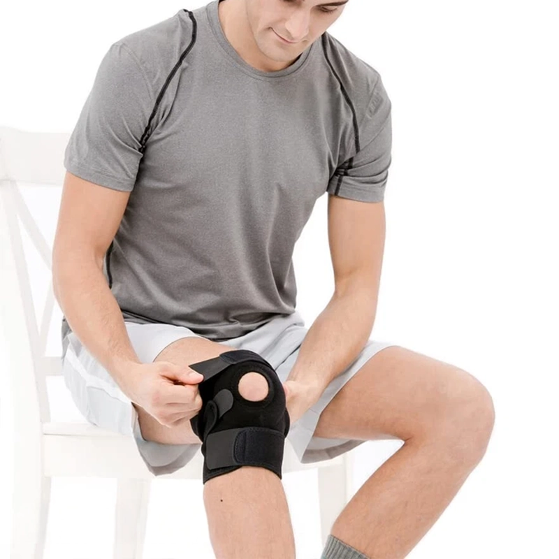 Questa ginocchiera mantiene il mio ginocchio comodo tutto il giorno al lavoro. Le cinghie si regolano facilmente, nessun pizzicamento. Sicuramente mi muovo di più!