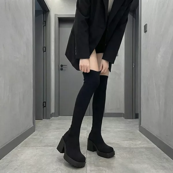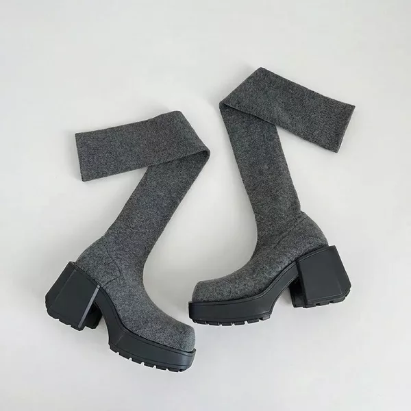 La tomaia spessa e lavorata a maglia mantiene gambe e piedi caldi all'esterno. La piattaforma massiccia protegge da marciapiedi bagnati e dal freddo.