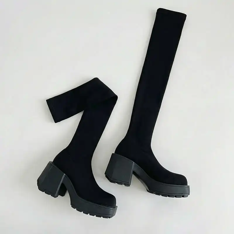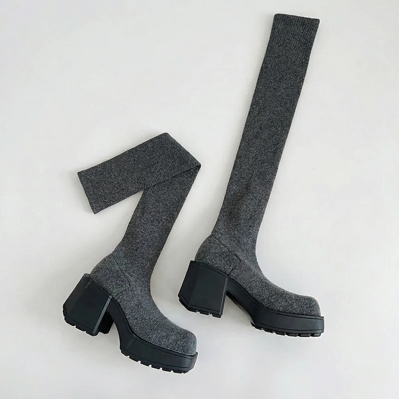 La tomaia spessa e lavorata a maglia mantiene gambe e piedi caldi all'esterno. La piattaforma massiccia protegge da marciapiedi bagnati e dal freddo.