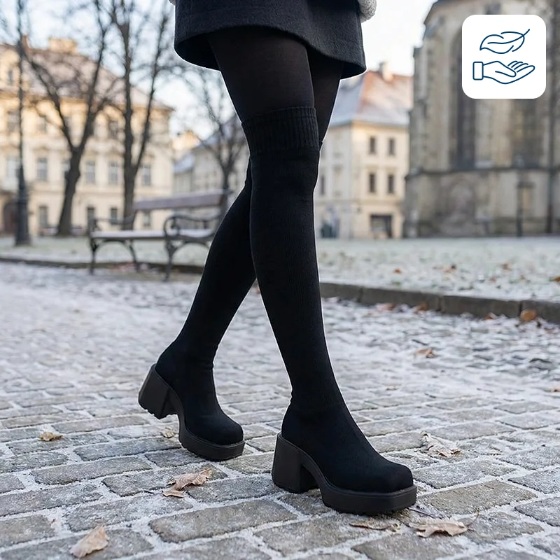 Indossa gli stivali Ortorex e prova subito comfort e supporto. Il morbido materiale a maglia avvolge delicatamente le gambe senza sfregare o scivolare. Le suole spesse facilitano la camminata mantenendo i piedi al sicuro dal freddo del pavimento. Queste scarpe aggiungono altezza senza rendere difficile l'equilibrio.