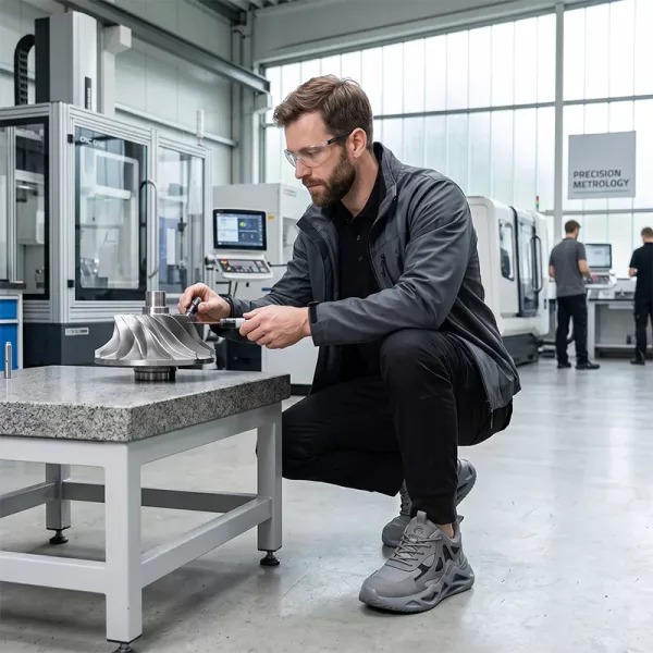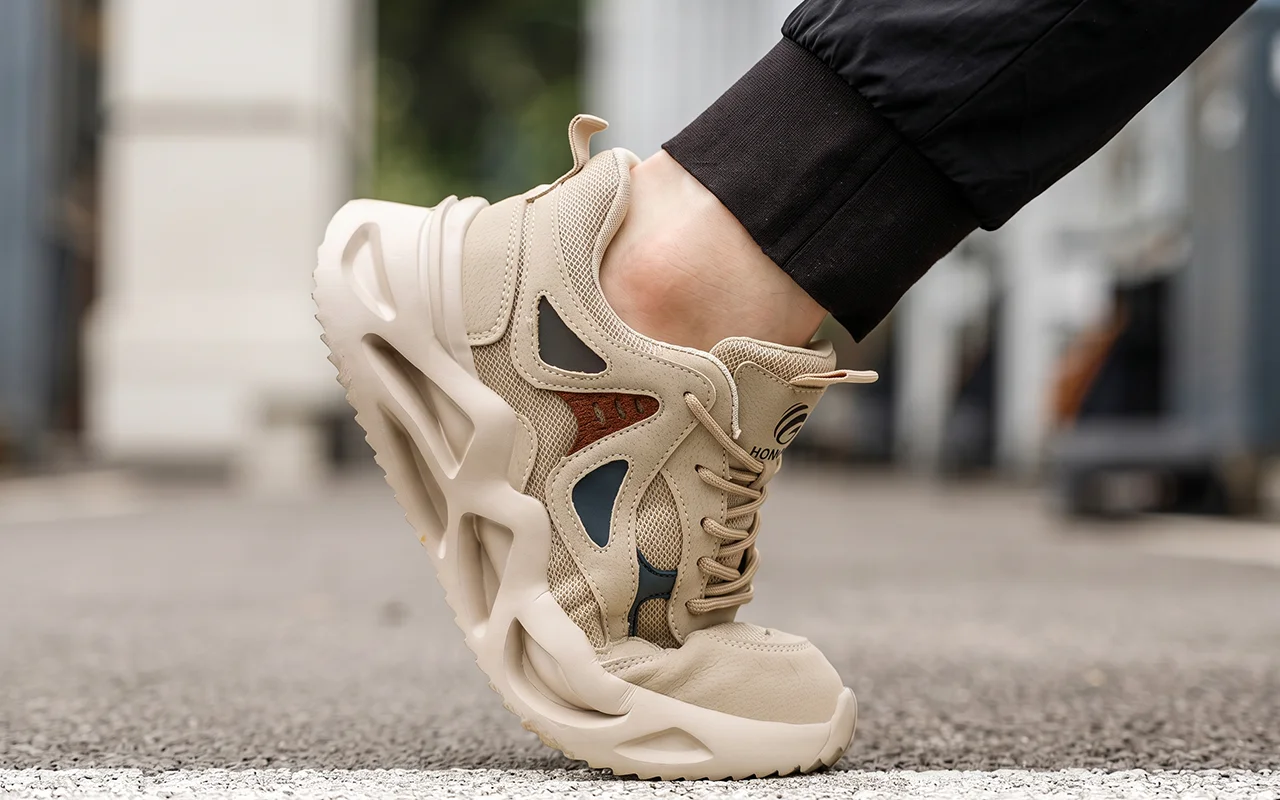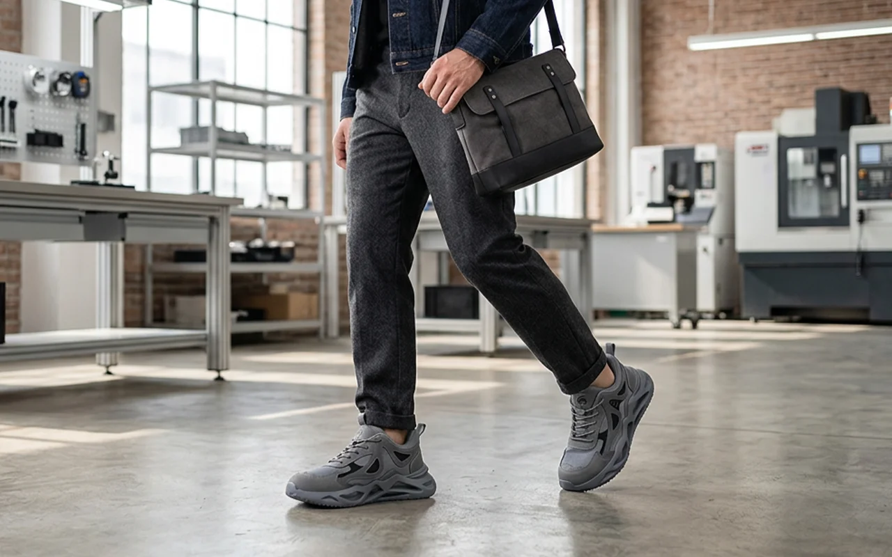 Sto in piedi in fabbrica dieci ore al giorno. Queste scarpe sono leggere, ammortizzano ogni passo e il puntale mi fa sentire al sicuro quando spostano i pallet intorno a me.
