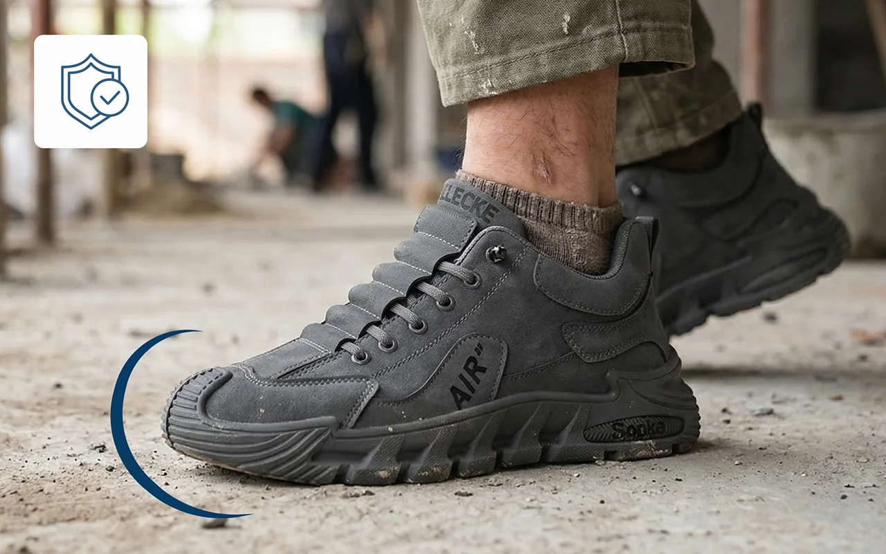 Le punte rinforzate proteggono i piedi dagli urti durante il lavoro o le passeggiate. Sentiti sicuro a ogni passo senza rinunciare allo stile o alla flessibilità.