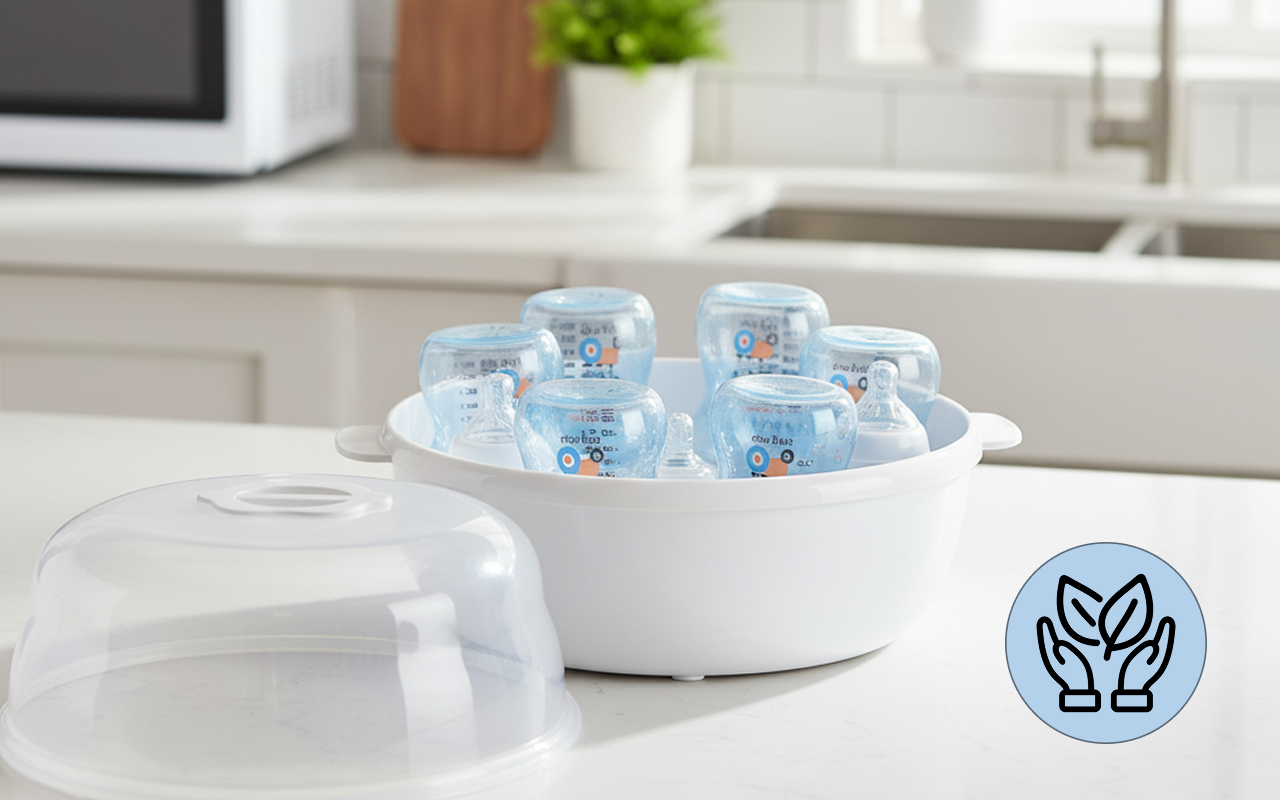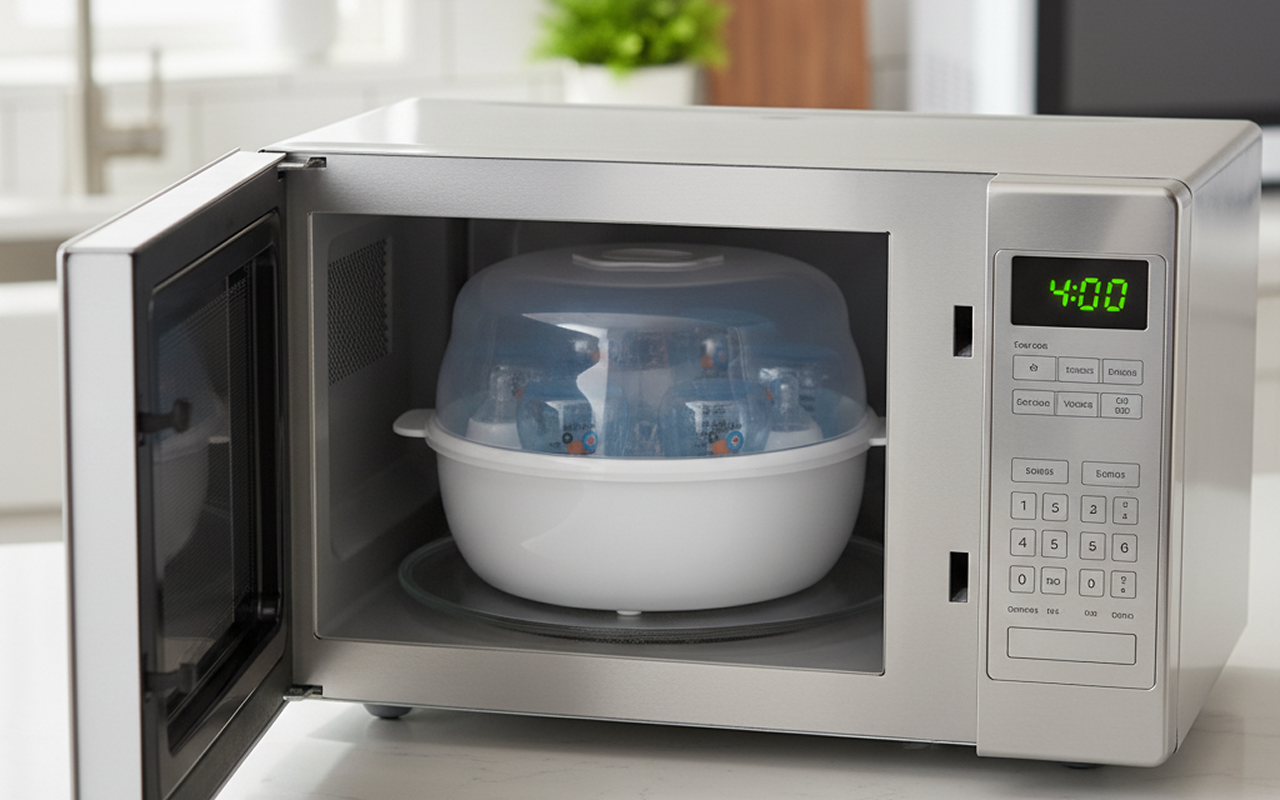 Basta riempirlo con le bottiglie, aggiungere acqua e microonde—fatto. Sembra anche sicuro, visto che la plastica è senza BPA. Davvero soddisfatto.