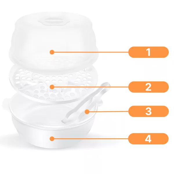 Lo sterilizzatore a vapore Ortorex utilizza plastica senza BPA. Nessuna sostanza chimica nociva viene a contatto con i biberon o i ciucci del tuo bambino.