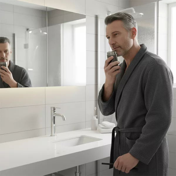 È così piccolo che entra davvero in tasca. Una rasatura veloce senza sporcare, poi basta togliere il coperchio e sciacquare.