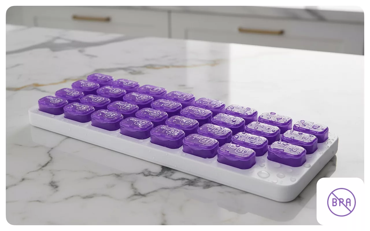 Controlla le dosi giornaliere usando semplici pod numerati. Ortorex rende facile per tutti conservare vitamine e medicinali. Pianifica per trentuno giorni senza confusione o stress. Ogni pod mantiene tutto visibile, sicuro e protetto per tutto il mese.
