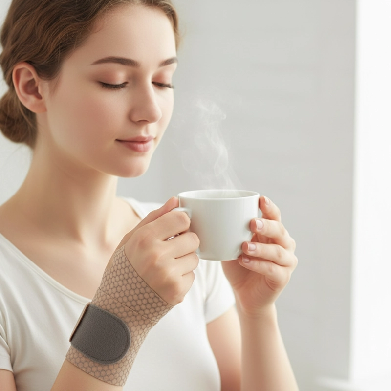 Indossare questo braccialetto mentre scrivo tutto il giorno mi ha davvero aiutato. Non sento più dolori e resta comodo anche dopo ore.