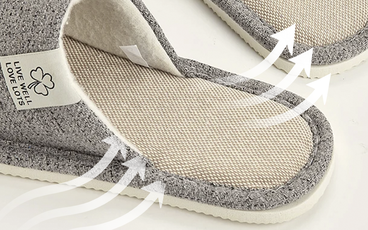 La miscela di cotone e lino lascia passare l'aria e previene la sudorazione della pianta del piede. Goditi un tessuto morbido che aiuta la pelle a rimanere rilassata tutto il giorno.