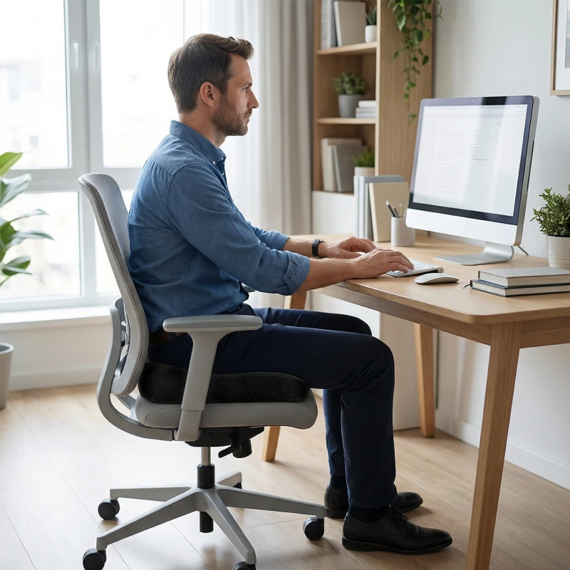 Usarlo sulla panca di legno in cucina ha fatto una grande differenza. La schiena resta rilassata e non mi sposto più ogni pochi minuti mentre lavoro al portatile.
