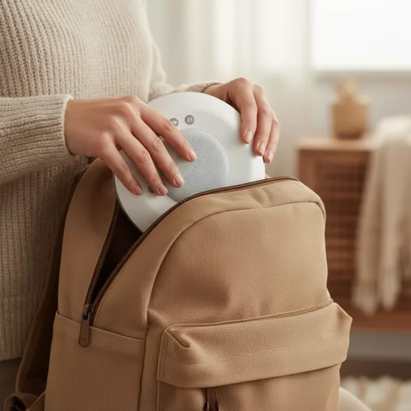 Il dispositivo Ortorex leggero si infila facilmente in borse o valigie. Ricaricalo velocemente tramite USB-C per goderti momenti di pace ovunque.