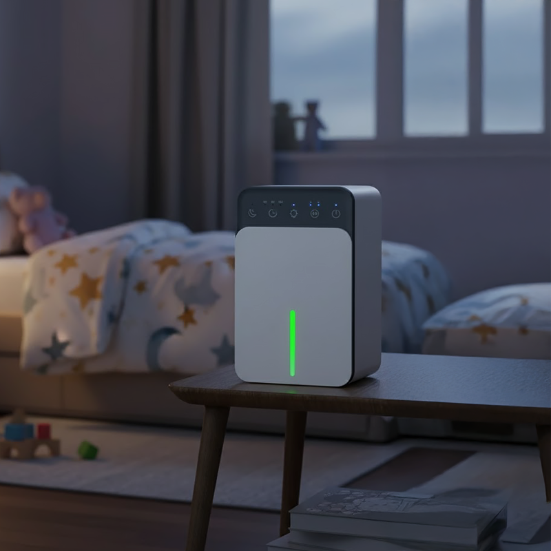 Mio figlio dorme meglio da quando lo usiamo nella sua stanza. La luce soffusa aiuta all’ora di andare a letto e mi fa piacere sapere che l’aria è più pulita.