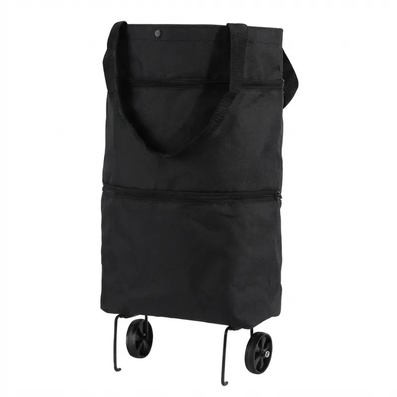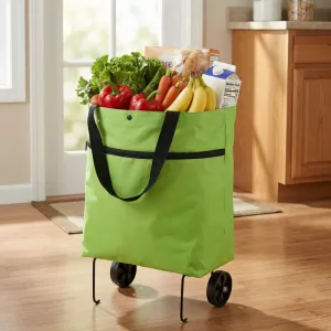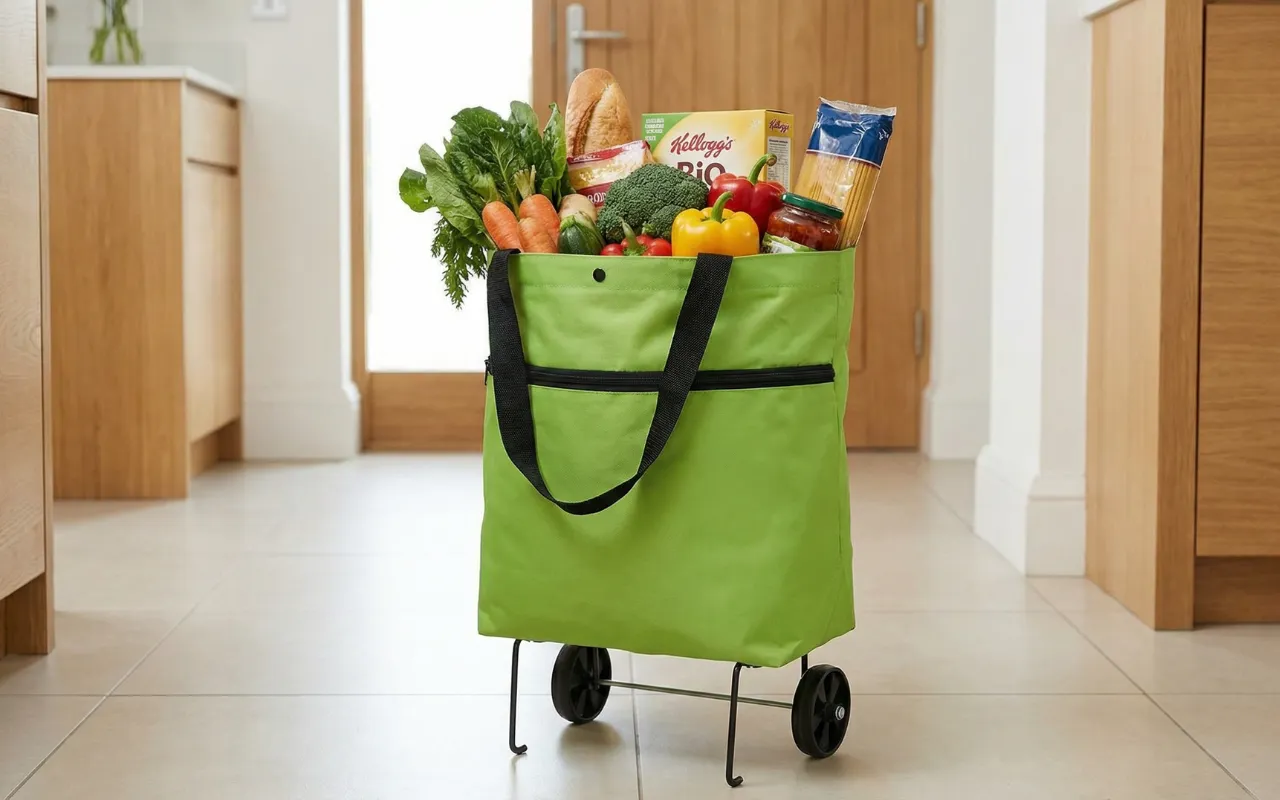 Spingo questo carrello al supermercato due volte a settimana. Trasporta facilmente latte, pane, verdura e prodotti per la pulizia. La borsa robusta impedisce che cada tutto.