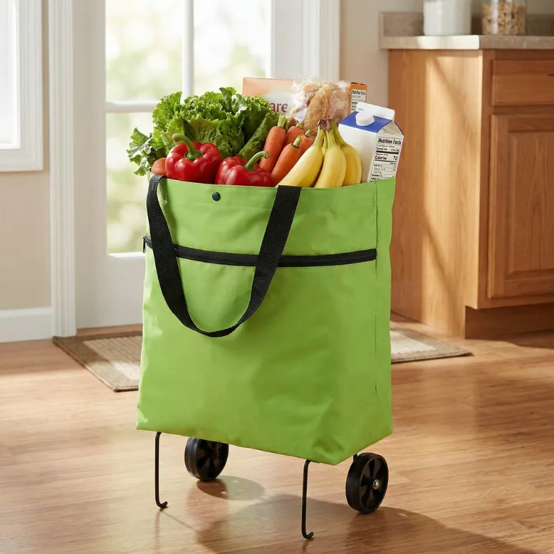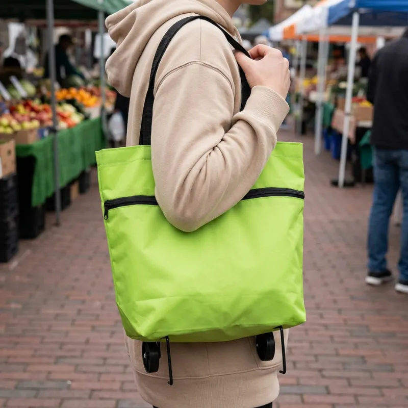Uso il carrello per il mercato contadino. Il telaio robusto e il tessuto resistente tengono al sicuro barattoli e frutta, e le ruote silenziose non disturbano i vicini la mattina presto.