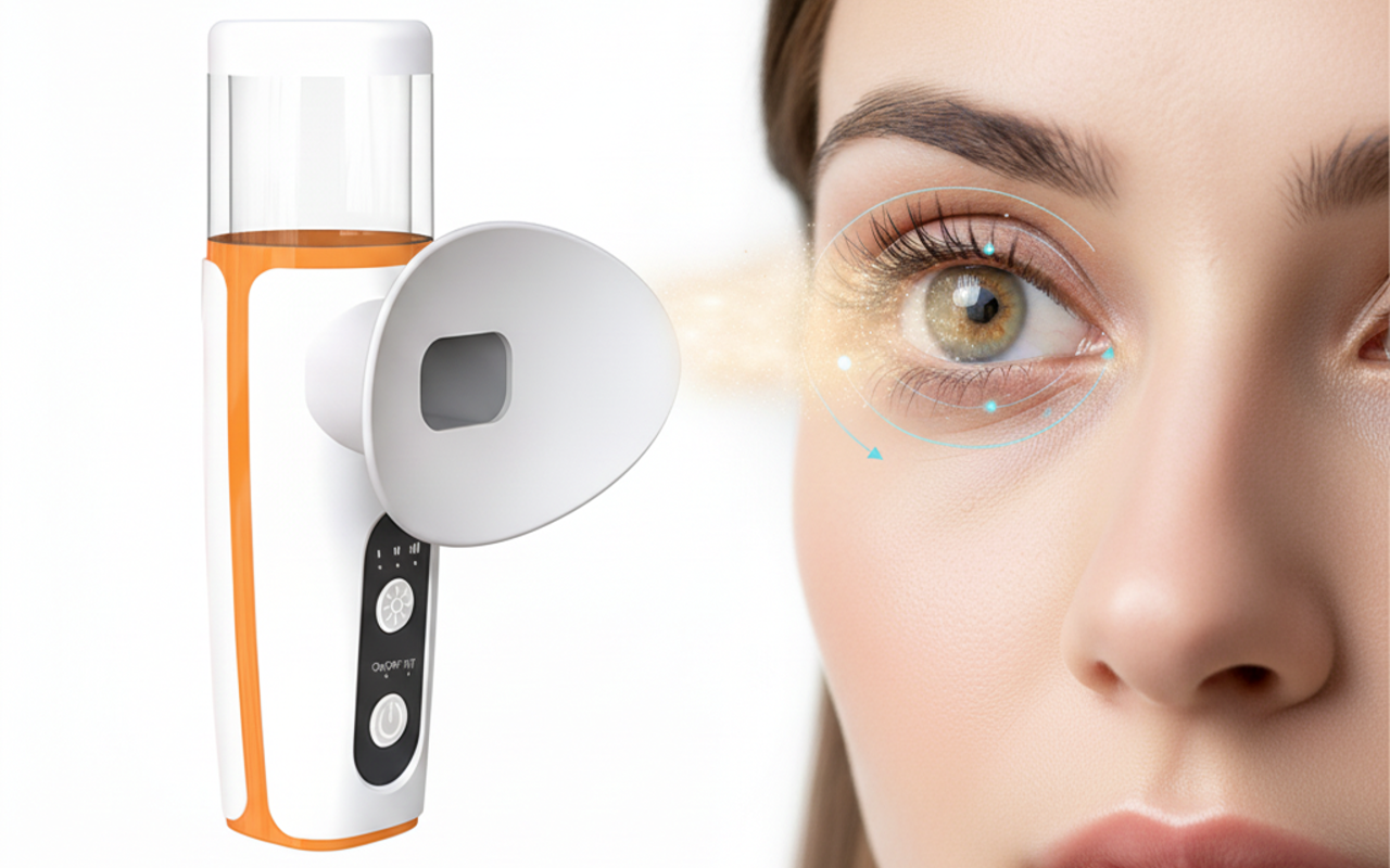 La struttura leggera permette di rinfrescare gli occhi in qualsiasi momento e ovunque. Il design ricaricabile si adatta facilmente alle borse per un uso quotidiano.