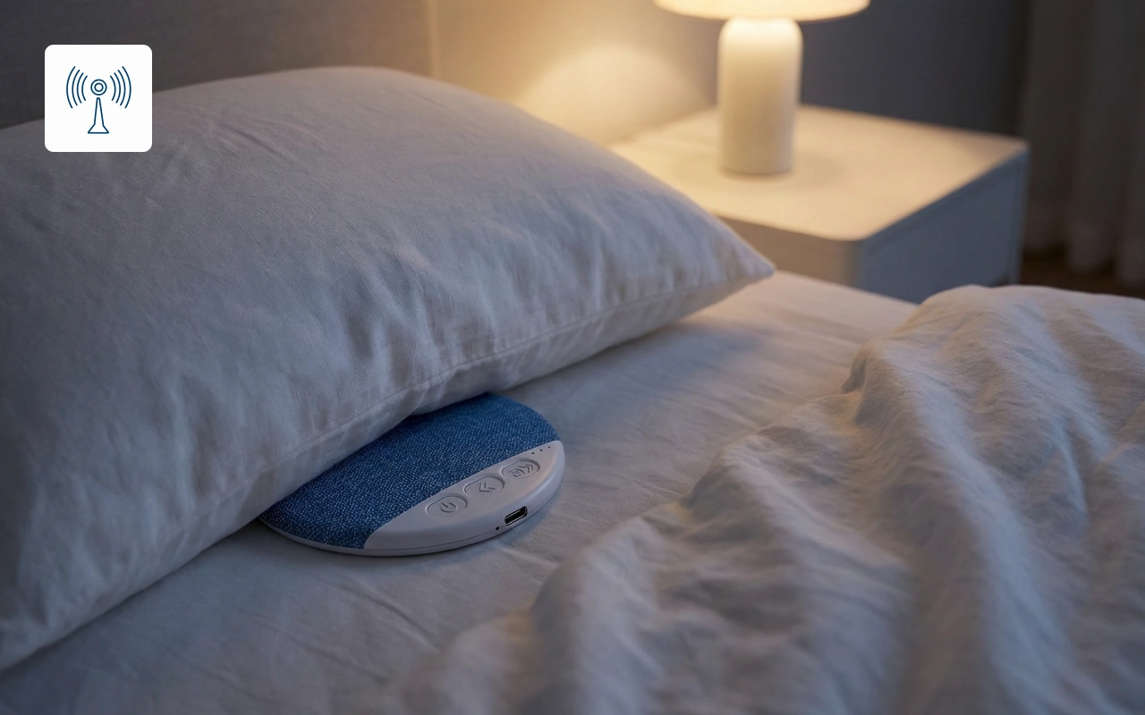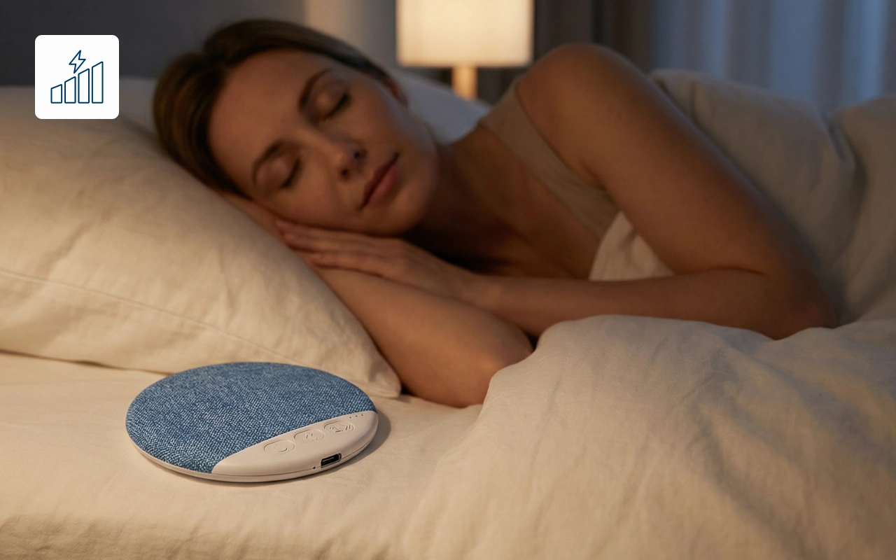 Ortorex porta notti tranquille nella tua vita intensa. Rilassati velocemente dopo giornate impegnative e protegge i tuoi sogni dai rumori. Goditi suoni rilassanti della natura che favoriscono il riposo. La sua forma sottile si adatta perfettamente su qualsiasi comodino. Vivi comfort, relax e un sonno più profondo ogni notte.