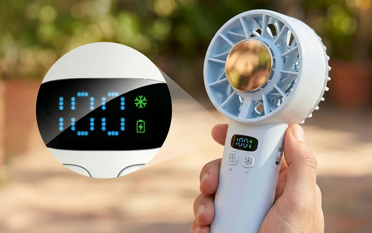Ho comprato questo mini ventilatore per i viaggi in metro. Mi rinfresca in pochi secondi e il display luminoso mi fa capire subito quando devo ricaricarlo.