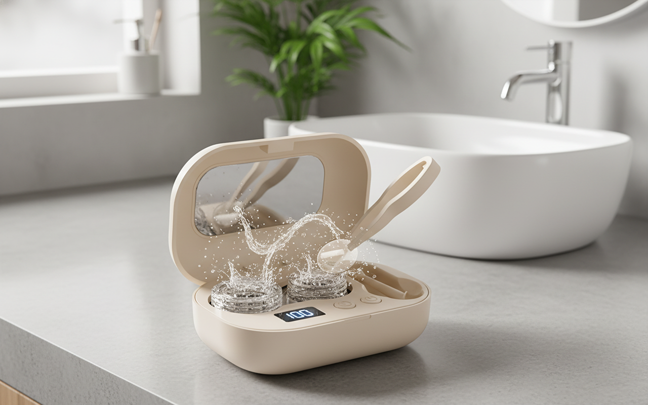Onde ultrasoniche ad alta frequenza rimuovono rapidamente proteine e polvere. Non serve strofinare, così le lenti restano sicure e limpide.