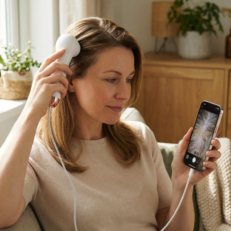 Usare la videocamera per capelli a casa ha totalmente cambiato il modo in cui mi prendo cura del cuoio capelluto. Lo zoom è ottimo e i video mi aiutano a ricordare com’era prima.