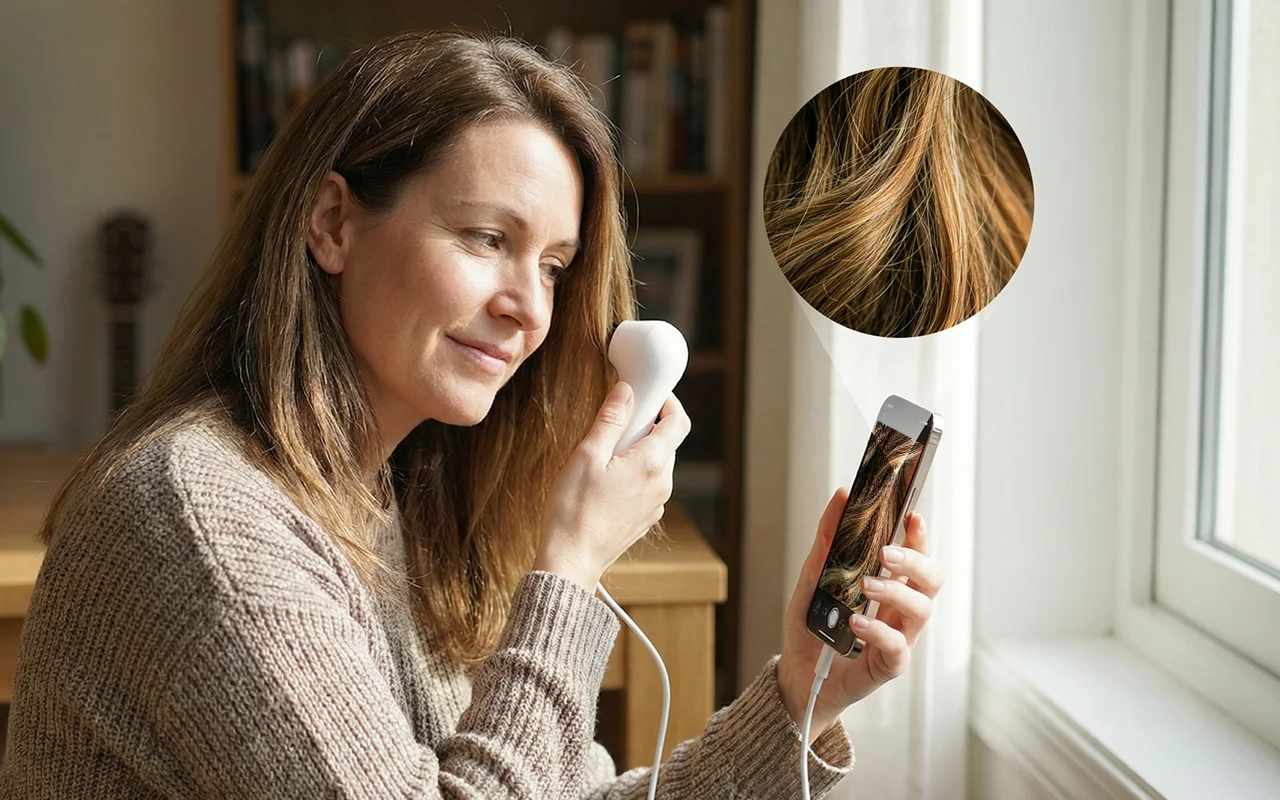 Questo microscopio per il cuoio capelluto rivela chiaramente ogni minimo dettaglio di capelli e pelle. Usandolo, puoi identificare secchezza, accumulo di sebo o problemi ai follicoli.
