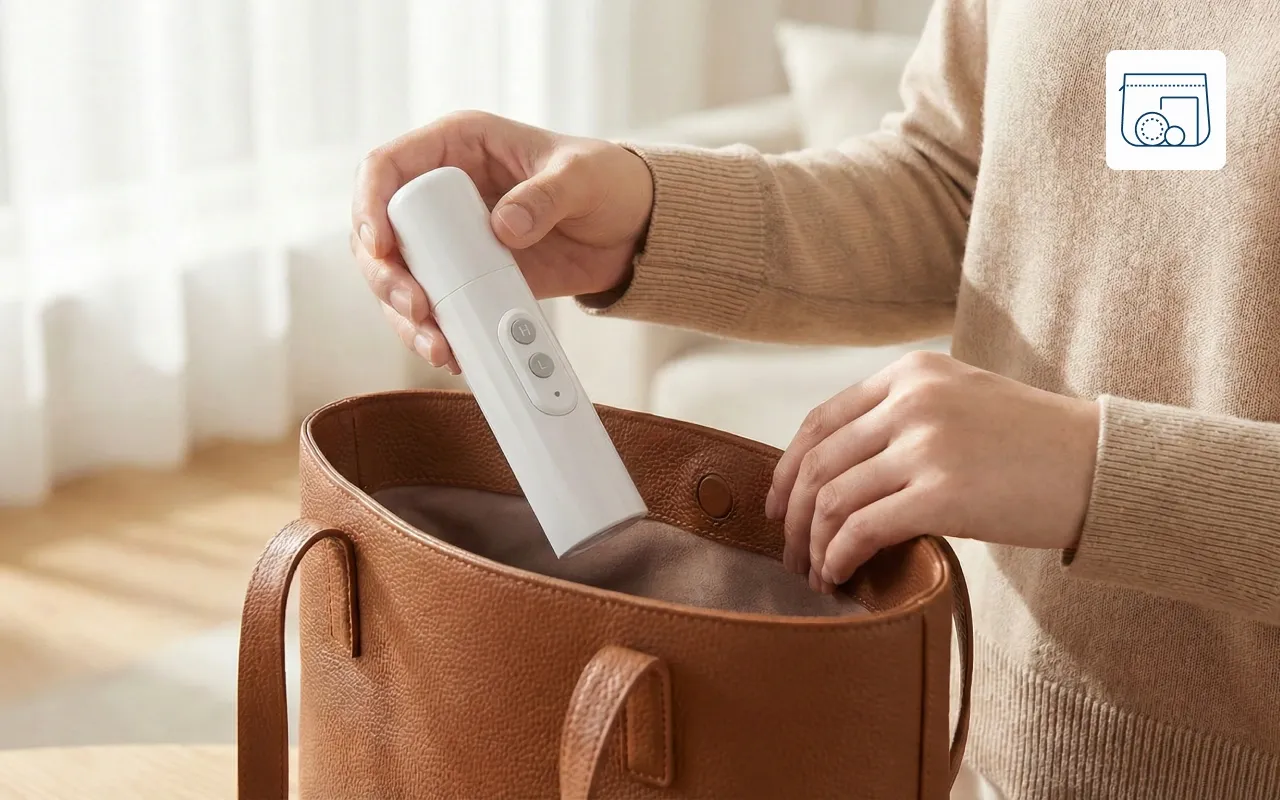 Si adatta facilmente accanto al mio laptop nella borsa da lavoro. Si ricarica con la mia power bank. Molto meglio che affidarsi a salviette o bagni pubblici.