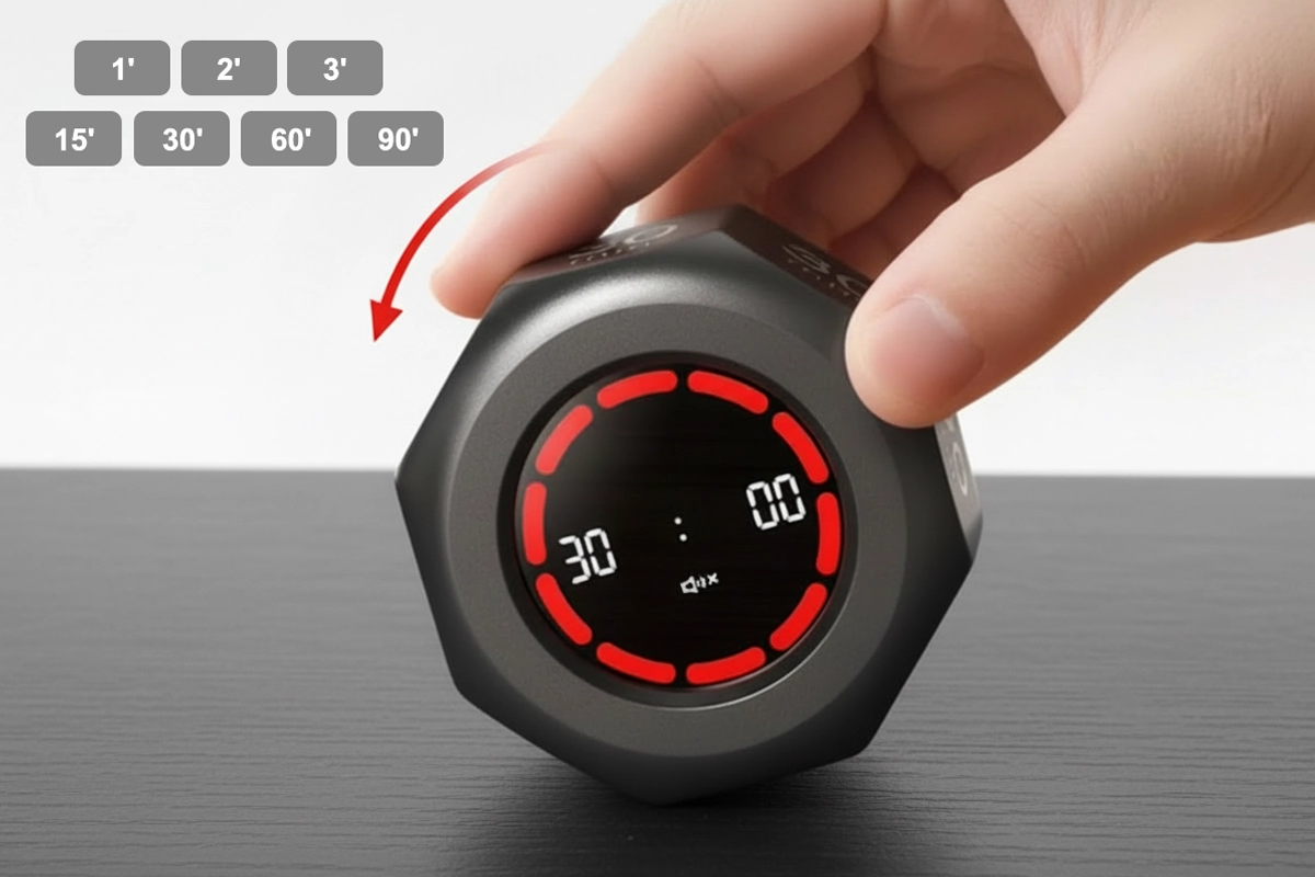 Le distrazioni fanno perdere preziose ore e ti impediscono di progredire. Ortorex Flip Timer porta una struttura chiara nelle attività e nelle routine quotidiane. Il design semplice si adatta a qualsiasi spazio in casa, a scuola o in ufficio. Imposta le attività, monitora le pause e finisci più velocemente ogni giorno.