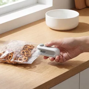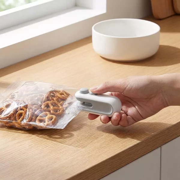 Ho comprato il mini sigillatore per la mia mamma anziana. Fa merenda lentamente e ora le sue patatine e i cracker restano croccanti senza bisogno di ingombranti set di mollette.