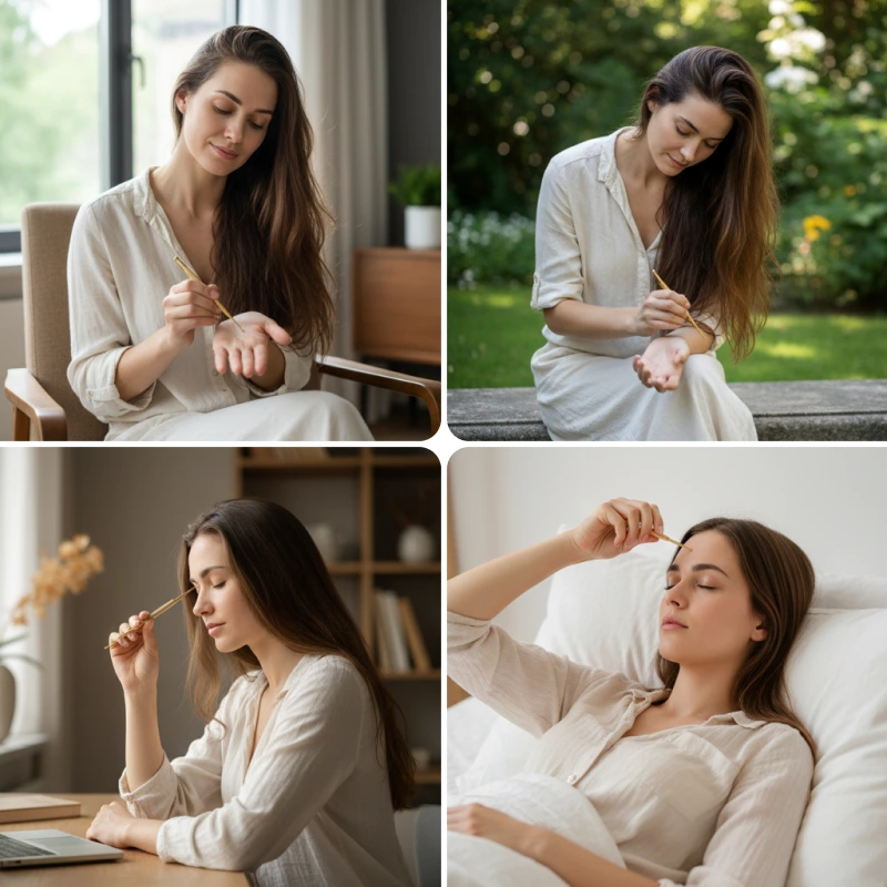 Tengo questa piccola penna in borsa e la uso sul collo durante le pause al lavoro. Scioglie la tensione e mi aiuta a restare calma.