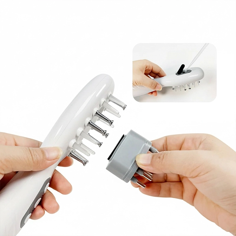 Il serbatoio rimovibile applica oli o sieri in modo uniforme ogni volta. Nessuna perdita o mani sporche, rendendo la cura del cuoio capelluto rapida e semplice.