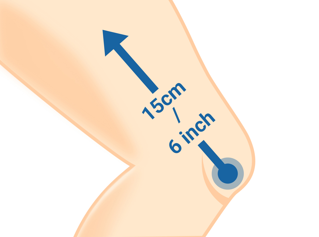 - 2. Posiziona il metro 15 cm/6" sopra il centro della rotula e fallo scorrere fino alla caviglia.