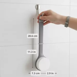 Il manico è solido e comodo da tenere. Lo appendo su un gancio dopo ogni uso. Mai avuta una spazzola così efficace su spalle e zona lombare.