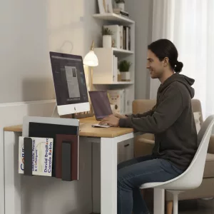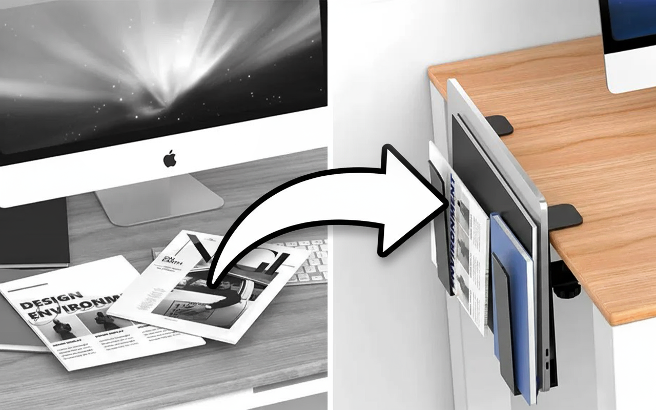 Riduci rapidamente il disordine usando un supporto intelligente accanto alla tua scrivania. Goditi più spazio per lavorare, digitare o scrivere senza distrazioni.