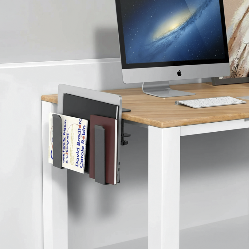 Riduci rapidamente il disordine usando un supporto intelligente accanto alla tua scrivania. Goditi più spazio per lavorare, digitare o scrivere senza distrazioni.