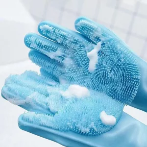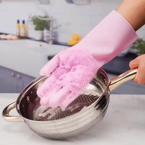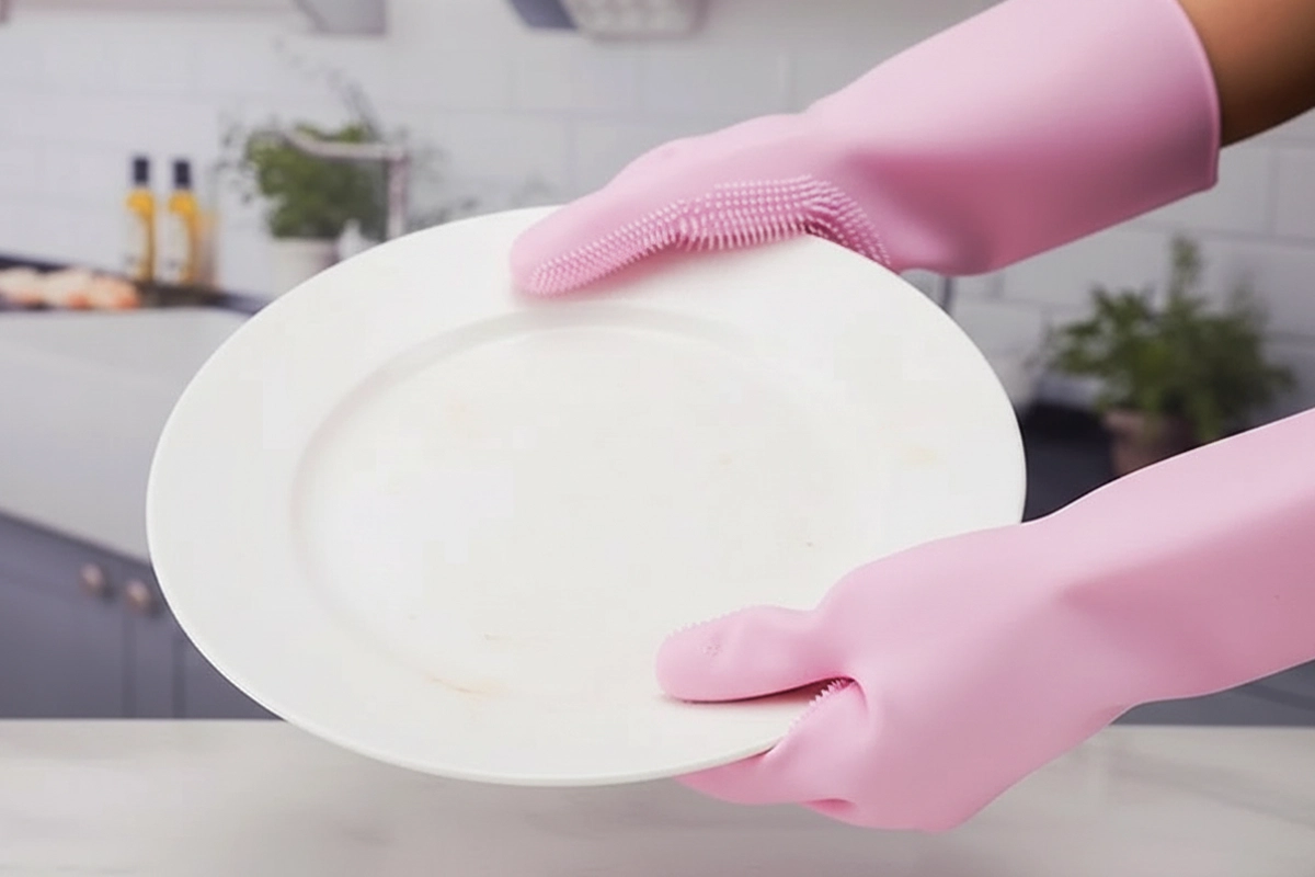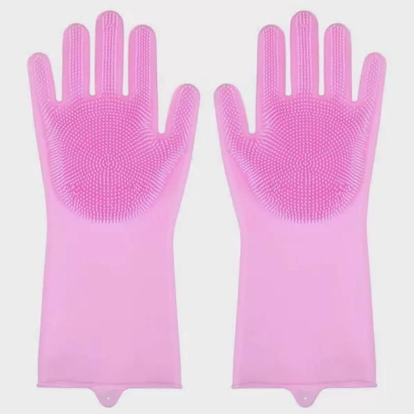 Questi guanti scrub rendono il lavaggio dei piatti molto più veloce! Le setole strofinano davvero bene e non graffiano i miei piatti.