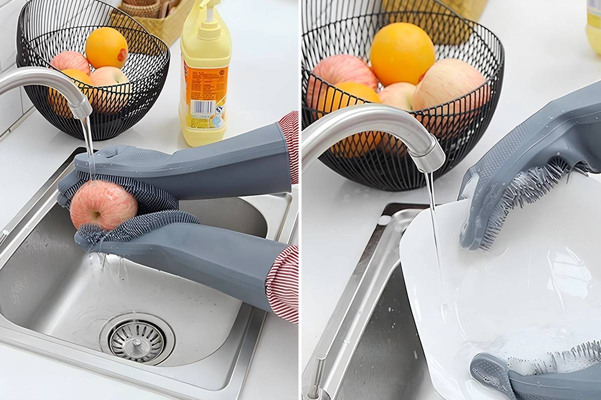 Ho sempre odiato lavare i piatti, ma questi guanti rendono la cosa quasi divertente. Il sapone fa molta schiuma tra le setole.