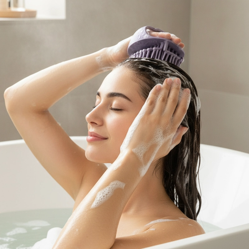 Questa spazzola è fantastica. Delicata sulla mia pelle sensibile ma riesce comunque a portare tutto lo shampoo alle radici. Le docce sono molto più rilassanti.