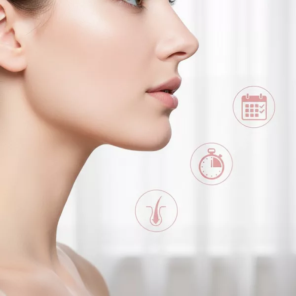 Nessun tiraggio o irritazione durante l'uso dell'epilatore Ortorex. Le zone sensibili rimangono calme e confortevoli dopo ogni utilizzo.
