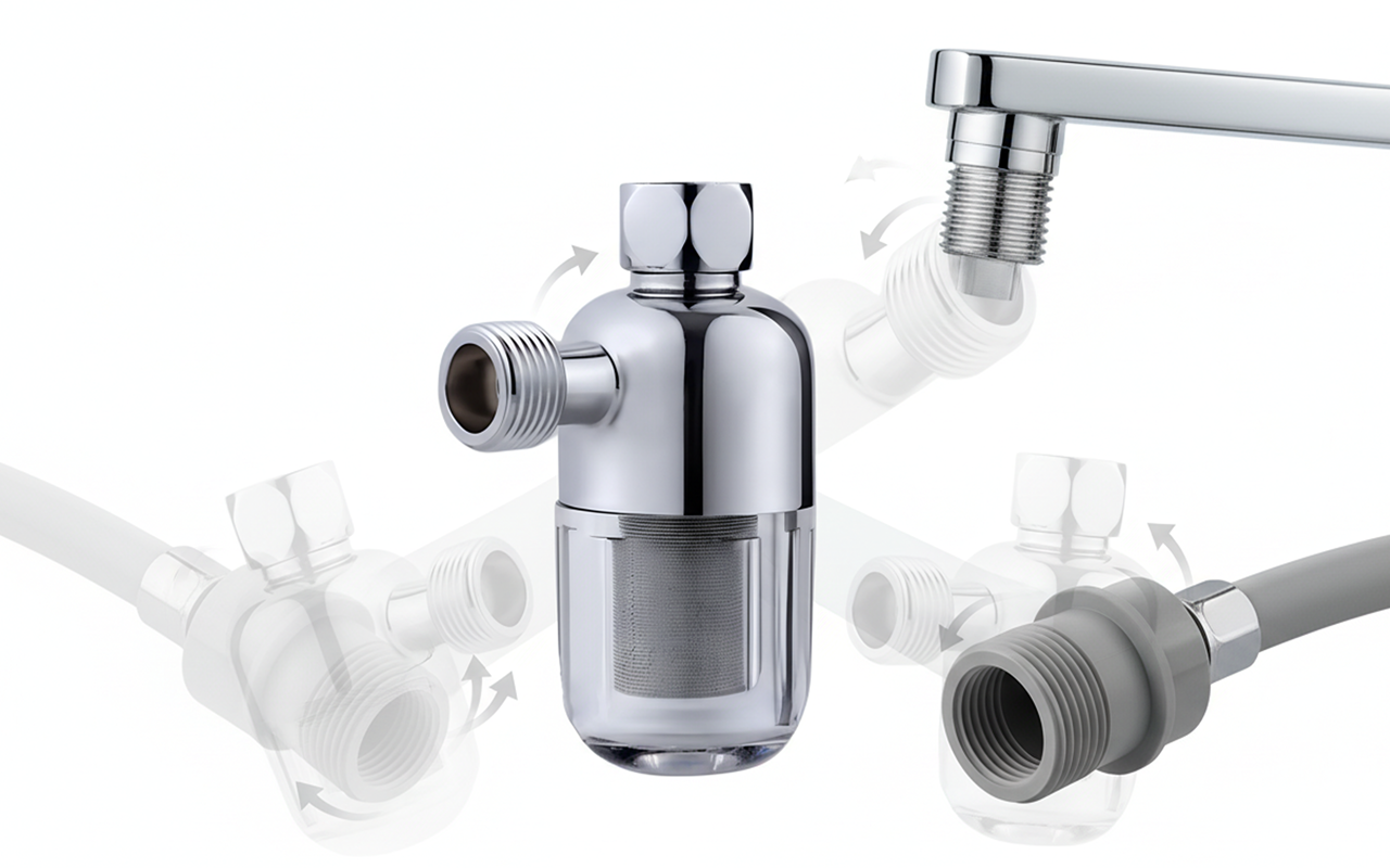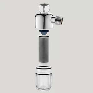Il filtro Ortorex si adatta a rubinetti, docce ed elettrodomestici per il lavaggio. Una rapida rotazione lo collega a quasi ogni raccordo.