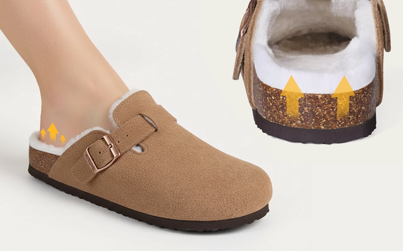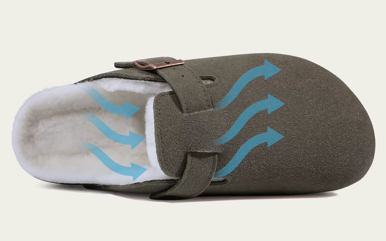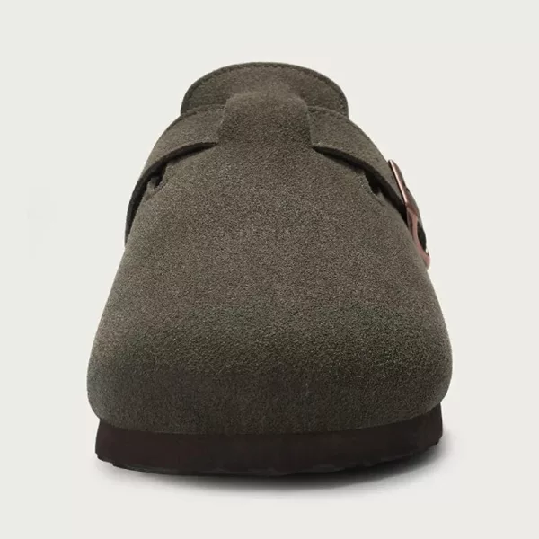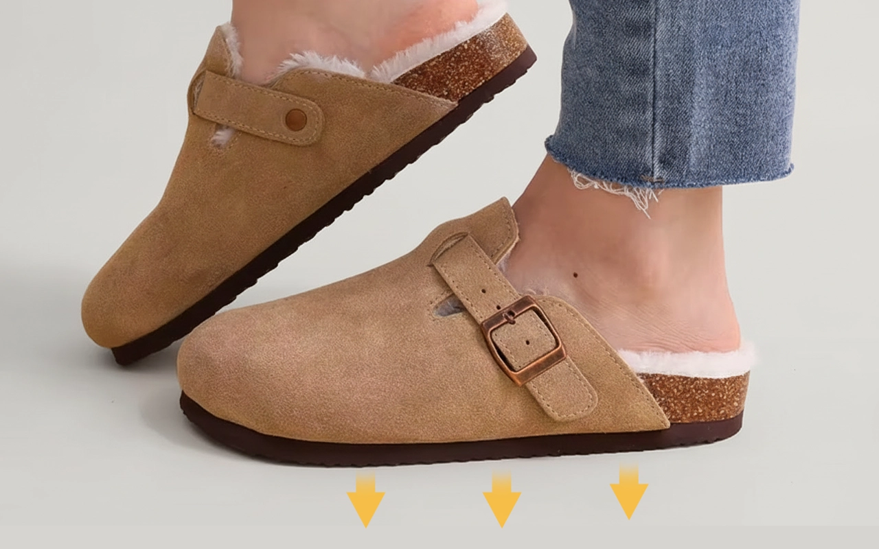 Indosso questi zoccoli in camoscio ogni giorno: i miei piedi non si stancano mai e il supporto dell’arco mi mantiene comoda anche quando sto in piedi per ore al lavoro.