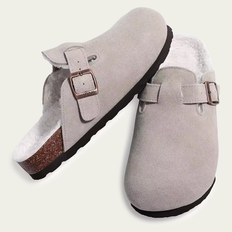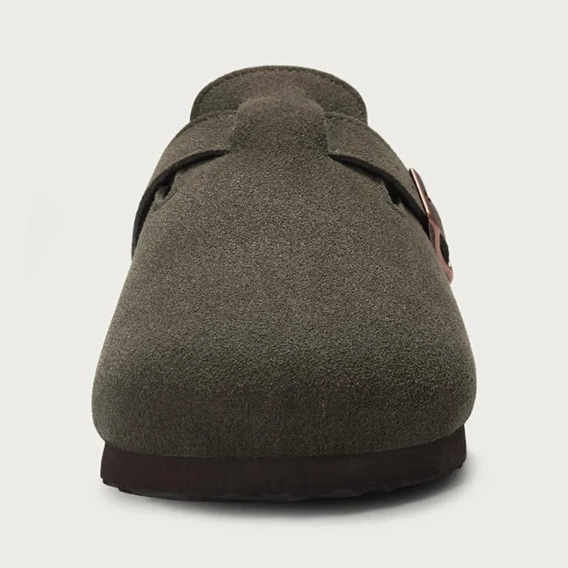 Cammina verso il relax e sentiti leggero ad ogni passo. Il morbido suede avvolge delicatamente i tuoi piedi senza punti di pressione. La base in sughero ammortizza il passo, rendendo facili anche le passeggiate più lunghe. Stile e funzionalità si uniscono così puoi avere un bel look senza complicazioni.