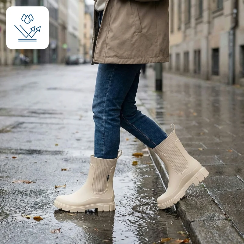 La pioggia rimane fuori mentre i tuoi piedi restano caldi e asciutti. Gira per la città anche quando le pozzanghere coprono la strada.