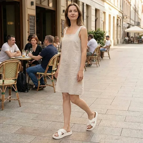 Ho preso questi sandali per una vacanza. Ho camminato per ore sul lungomare e i miei piedi sono rimasti rilassati. La suola antiscivolo dava una buona stabilità sulle piastrelle lisce.