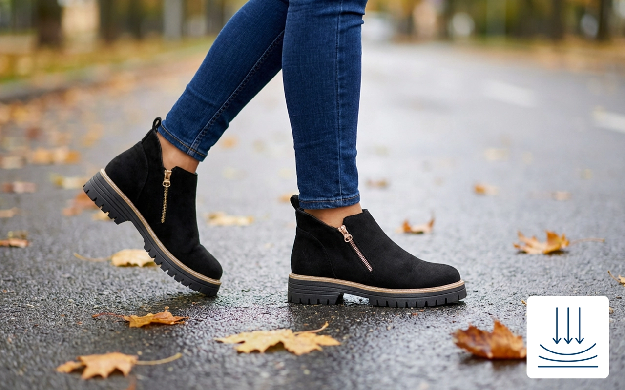 Adoro la suola antiscivolo di queste scarpe—nessun rischio di scivolare neanche sotto la pioggia. I miei piedi restano asciutti e l’interno morbido è così accogliente.