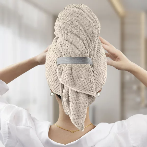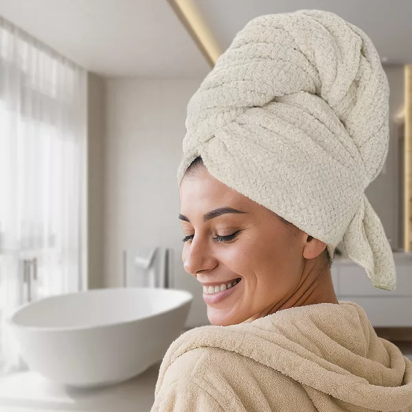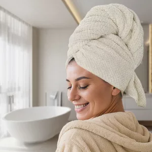 La microfibra è fantastica—delicata sulla testa e i miei capelli si asciugano molto velocemente! Niente più zone bagnate o asciugamani pesanti che cadono. Non tornerei indietro.
