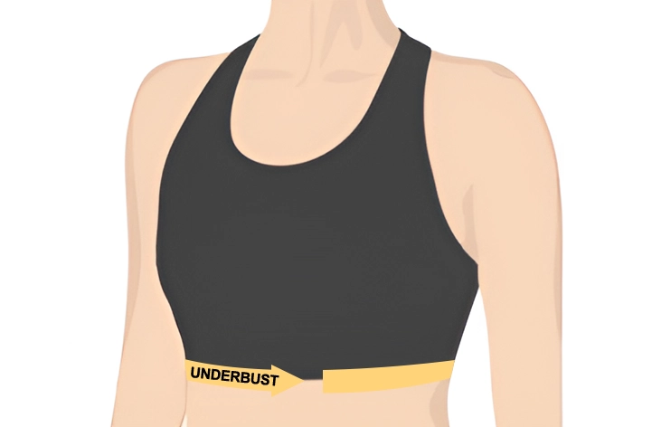 - 2. Per trovare la misura sotto seno, avvolgi il metro attorno alla cassa toracica, direttamente e uniformemente sotto il seno.