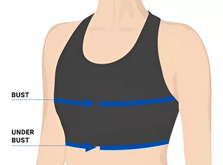 - 3. Per trovare la misura sotto il busto, avvolgi il metro intorno alla gabbia toracica, direttamente e in modo uniforme sotto il busto.