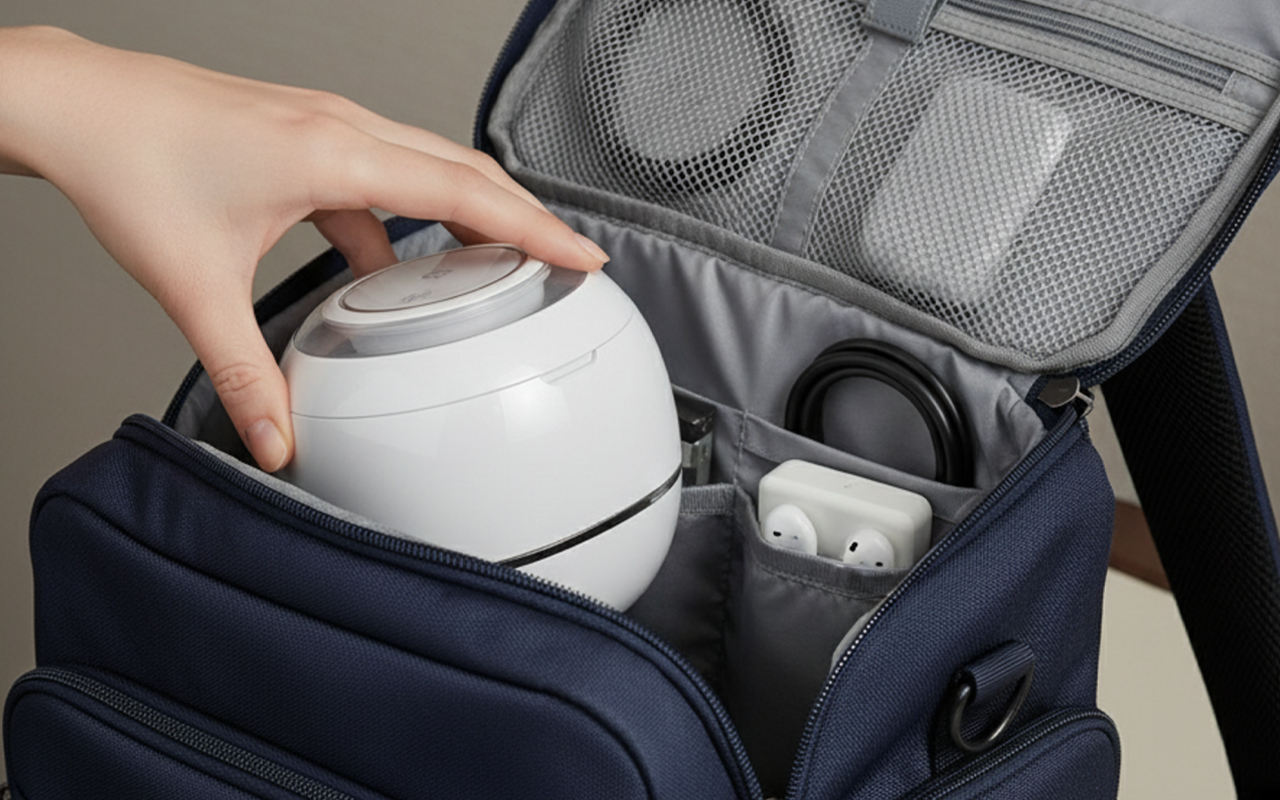 Basta un tocco per iniziare la pulizia. La forma compatta si adatta a qualsiasi spazio e si trasporta facilmente ovunque tu vada.