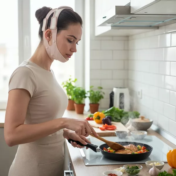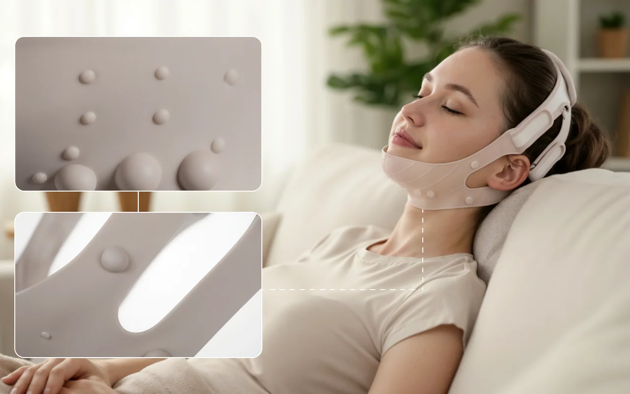 Indosso questa fascia lifting mentre leggo la sera e la mia linea della mascella sembra già più definita. Silicone morbido, non pizzica e le mie guance sono più sode.