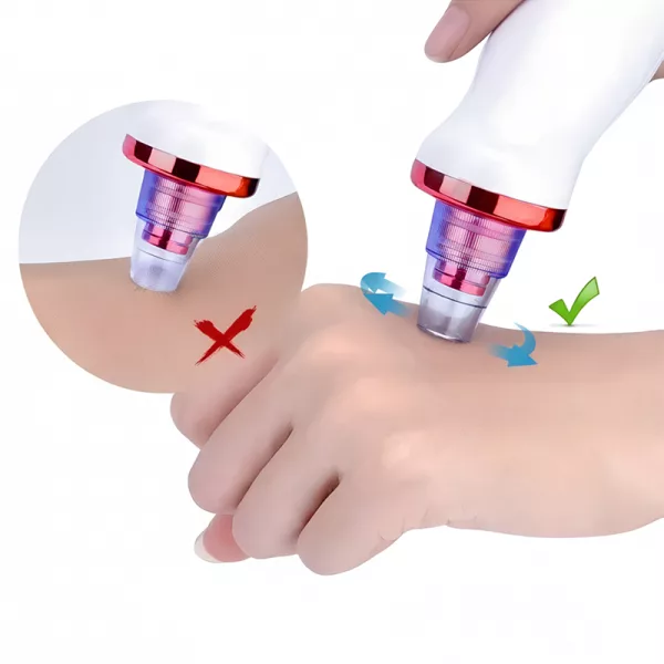 Le punte lisce scorrono sulle guance senza causare danni. Adatto sia ai volti sensibili che agli utenti più giovani.