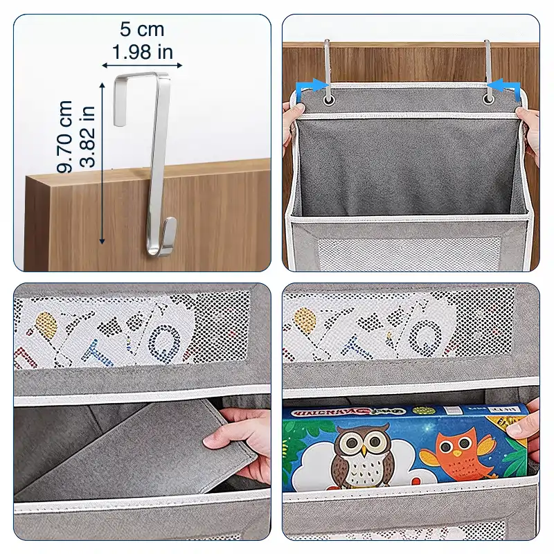 Questo contenitore è fantastico per i giocattoli dei miei figli. I loro peluche, le macchinine e i libri da colorare ci stanno perfettamente. Facile anche da appendere da solo.